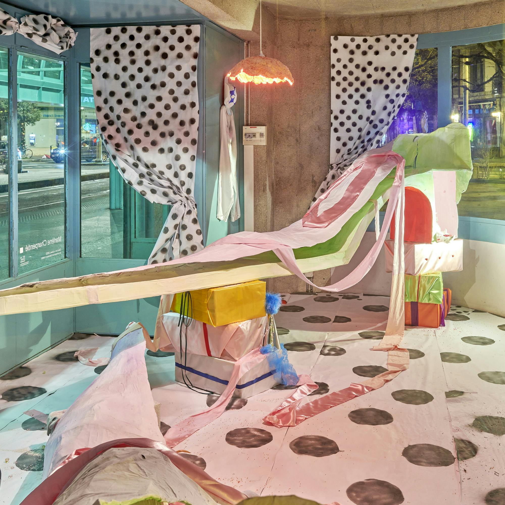 Marlène Charpentié creates fantastic universes tinged with a baroque aesthetic inspired by images from children’s stories. Her works – often in papier-mâché – are made from manufactured or modified objects. The artist thinks of her sculptures primarily as objects, carefully selecting their shapes and details, then their potential uses in her performances. Her naive and saturated worlds, when combined with her burlesque and clownish acting, create true tableaux vivants. Marlene’s work is both funny and touching, with a unique energy and excessive generosity.