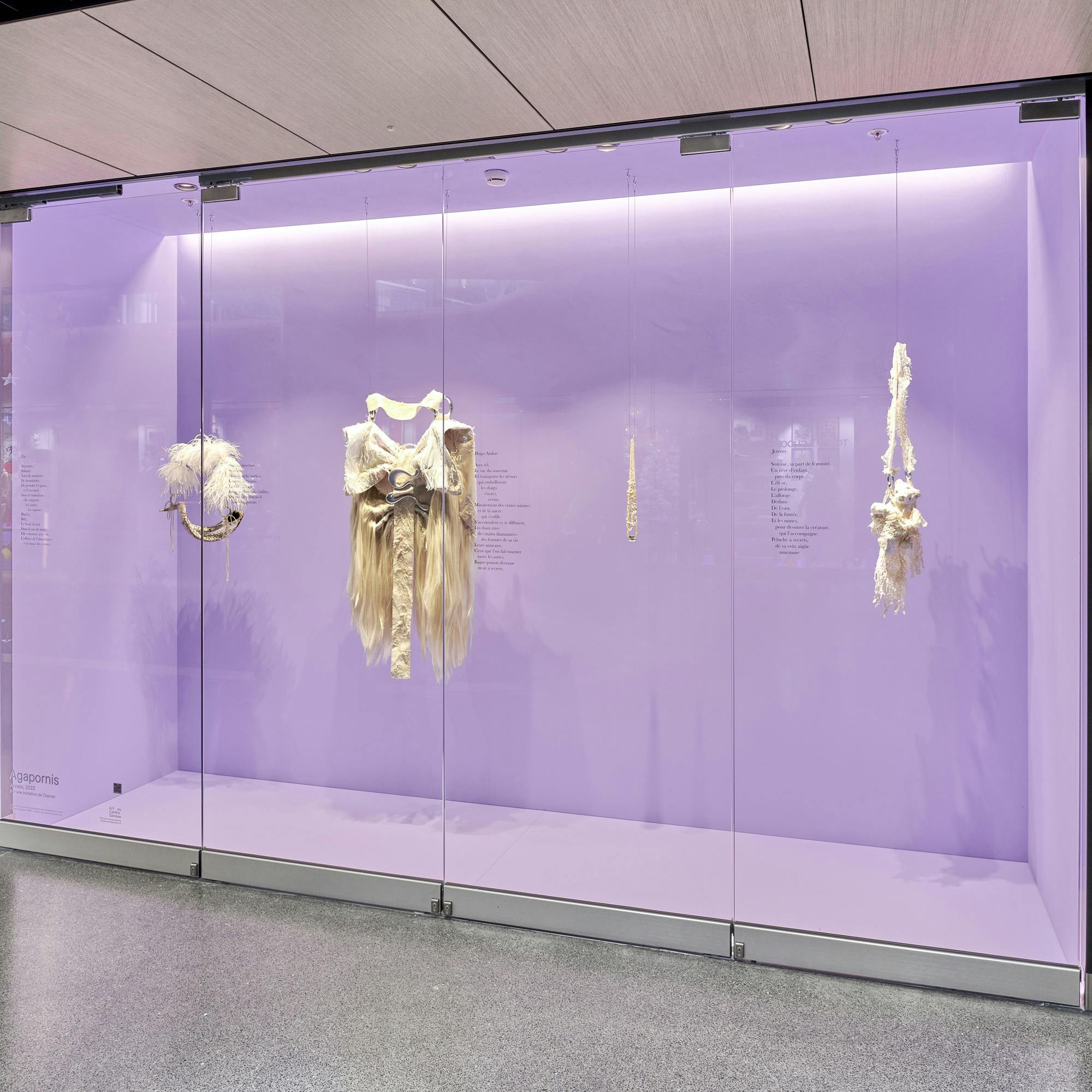 Agapornis se matérialise en un univers enchanté, aux objets inspirés de répertoires fantastiques, à la fois costumes de scène revendicatifs et pièces de savoir-faire artisanaux.
