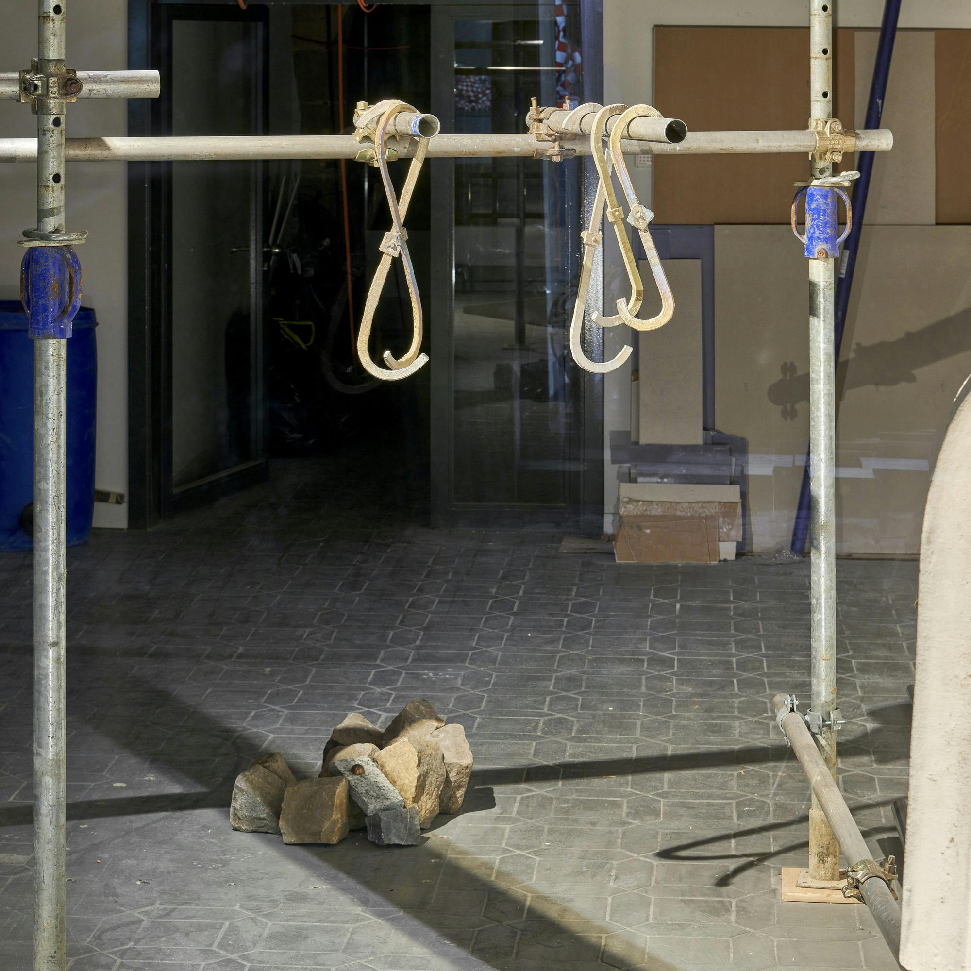 Du haut de leur colonne, des lions te scrutent. Tu doutes: sont-ils là pour t’accueillir ou pour te refuser l’entrée? Alors que tu admires les arabesques du portail en fer forgé, tu ne peux t’empêcher de penser que ces ornements sont aussi des morceaux de métal qui finissent en pointe. Alors, la ville se transforme en un espace empli d’yeux qui ne peuvent pas voir et de bouches qui ne peuvent pas parler mais qui pourtant hurlent leurs commandements, intimident, dissuadent à demi-mots. De l’environnement urbain occidental, Jeanne Tara relève les éléments architecturaux marqueurs d’autorité, de classe ou de territoire. Elle s’intéresse aux formes qui obstruent, empêchent et entravent les corps et les esprits.