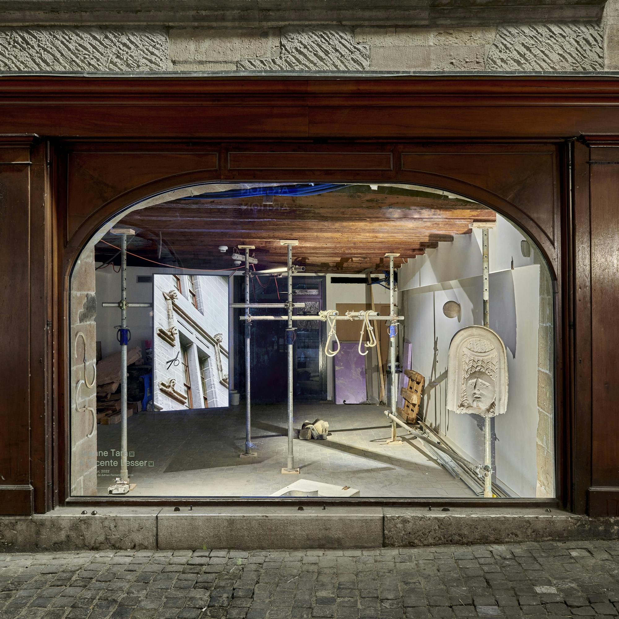 Née en 1994 à Ambilly, Jeanne Tara se forme à la danse classique et contemporaine avant de se tourner vers les arts visuels. Elle étudie à la Haute Ecole d’Art et de Design de Genève entre 2012 et 2015 et poursuit sa formation artistique à l’Ecole de Recherche Graphique de Bruxelles où elle obtient un master en pratiques de l’art. Elle a montré son travail à différentes reprises, à Genève à Halle Nord, à l’espace TOPIC, ou encore au Centre d’Art Contemporain, mais aussi au Jungkunst à Winterthur, aux Halles EAC de Porrentruy, ainsi qu’à la MAC de Pérouges (Rhônes Alpes). Son travail traite des notions de frontières, d’autorité et de pouvoir envers les corps dans l’espace public, notamment à travers le prisme de l’architecture. Dans sa pratique, elle fait appel à différents médiums: peinture, sculpture et installation. Elle vit et travaille à Genève.
